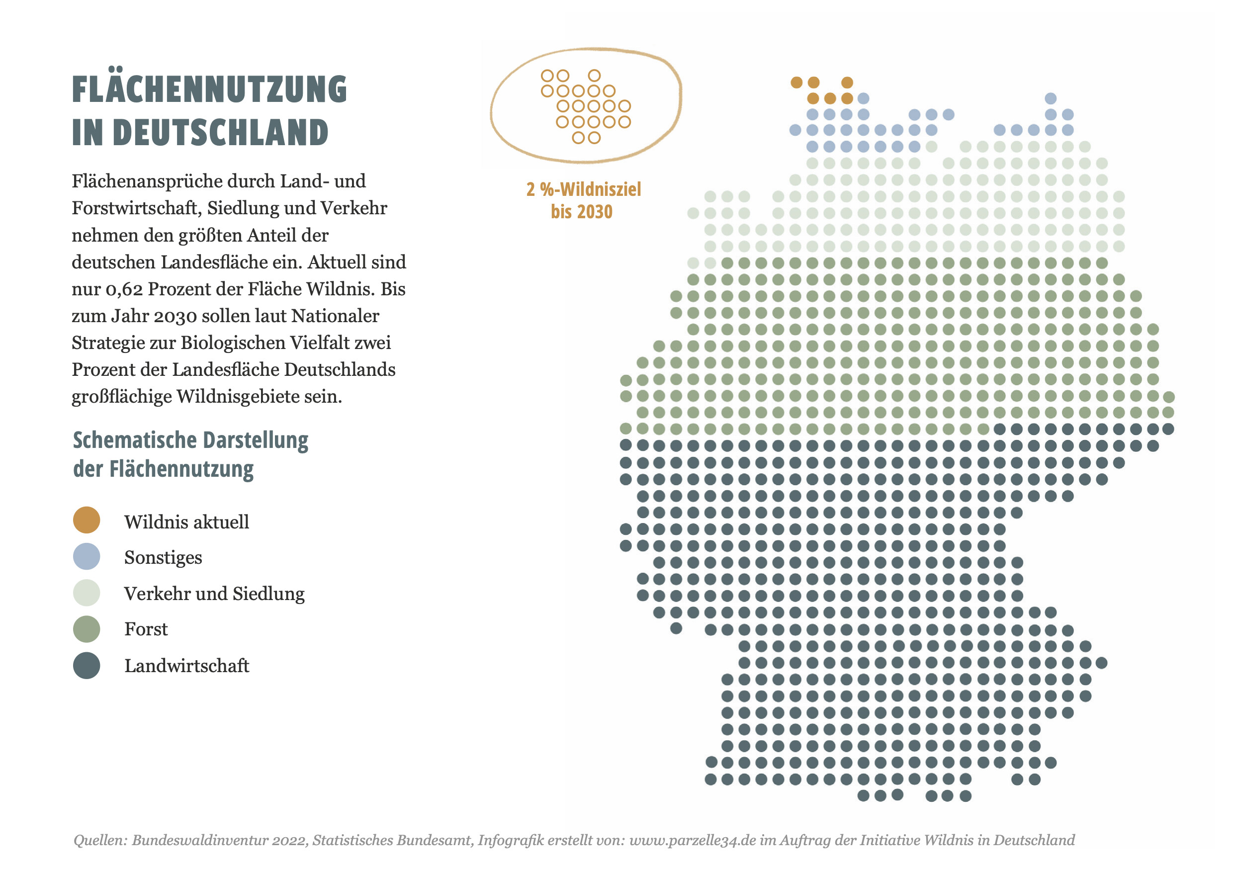 Hier finden Sie Infografiken zu guten Gründen wir Wildnis, der Flächennutzung in Deutschland sowie den Schutz- und Wildniszielen für Deutschland. Sie können diese als PDF herunterladen und unter Angabe der Quelle nutzen.